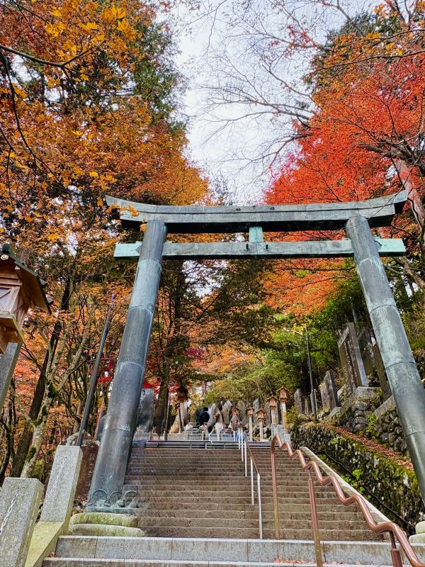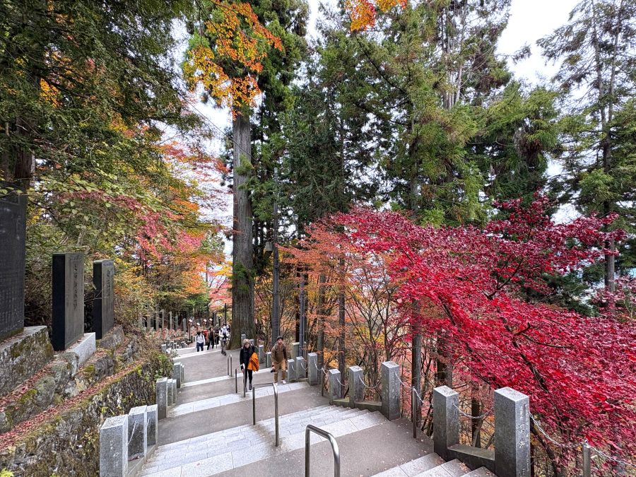 ケーブルカーを降りて、まずは武蔵御嶽神社に立ち寄ることに。なんたって御岳山山頂=神社でありますので!しばらくは舗装路をてくてく。この日の紅葉は圧巻でありました。