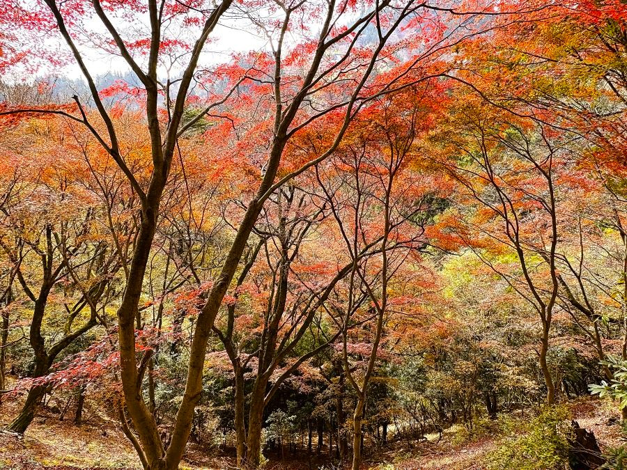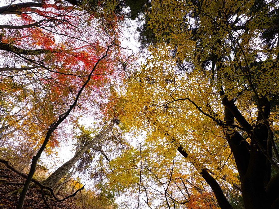 思い思いに色づいた木々が織りなした山の紅葉。木々は間もなく葉っぱを落とすのだな~としみじみ眺めつつ、静かな冬の山へ思いをはせたりして。