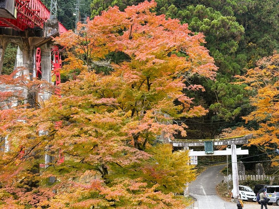山肌は美しい紅葉に彩られていて、この時期ならではの景色であります。