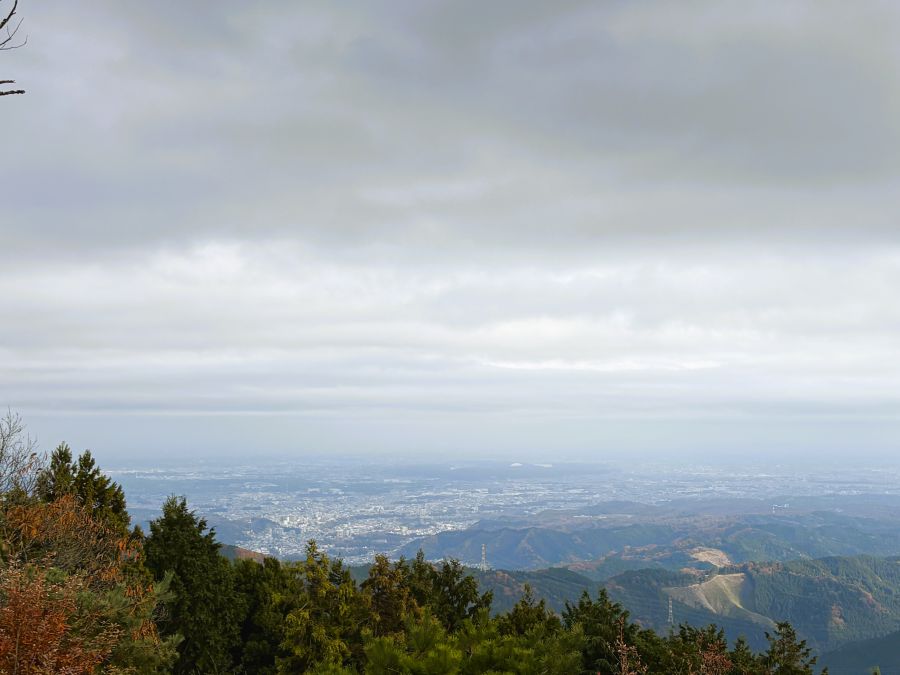 日の出山山頂からは東側が開けているので、関東平野の東京都心方面の眺望が良いのです。この日はあいにく薄曇りでしたが、晴れた日はスカイツリーも見えるはず。