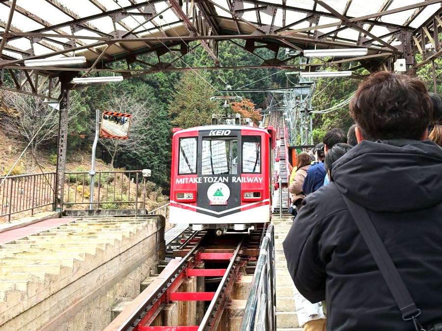 ケーブルカー滝本駅の正面には大きな鳥居があります。「武蔵御嶽神社」参道入口の鳥居です。ここから登って行くこともできるのですが、私たちはケーブルカーに乗ります💦
