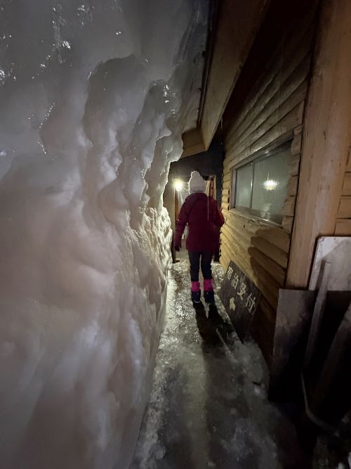腹ごしらえの後はチェックイン。むむむ、この雪のトンネルを抜けるのだな。
