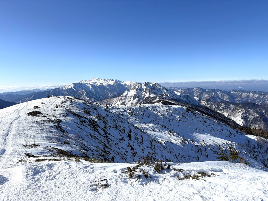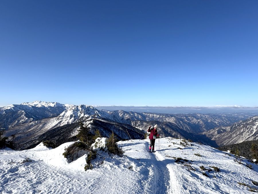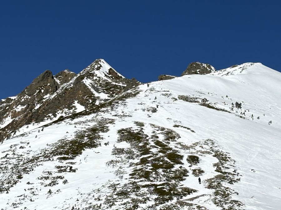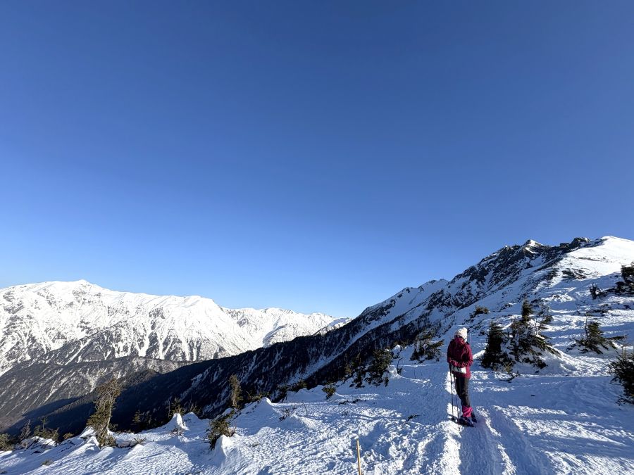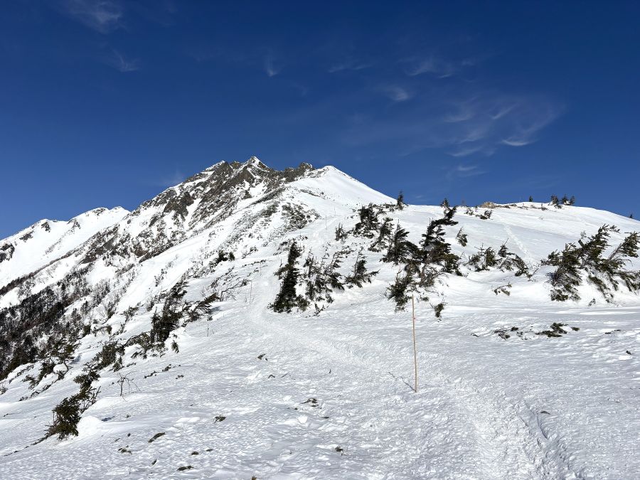 2400メートル地帯の稜線は、もしお天気が悪いと猛吹雪でホワイトアウトしてしまうのですが、こんな素晴らしいお天気に恵まれたこと、心より感謝申し上げる次第です💦