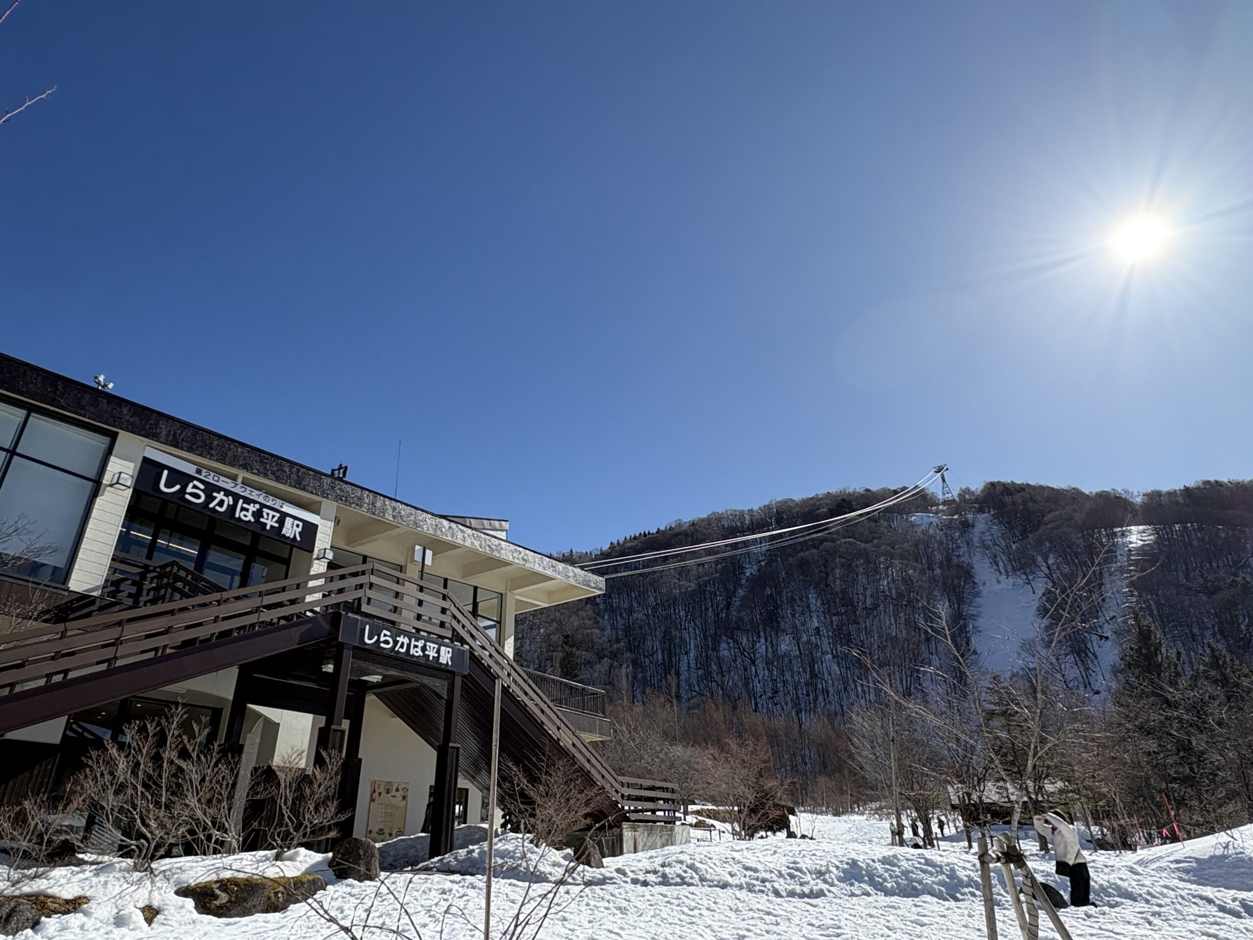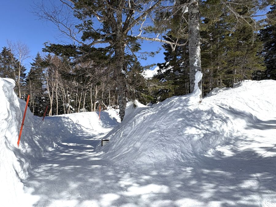 ロープウェイ駅の外、周辺はきれいに雪かきされていて、たくさんの観光客の皆さんが雪と戯れていました。どうやらこの周辺は「頂の森」というらしい。