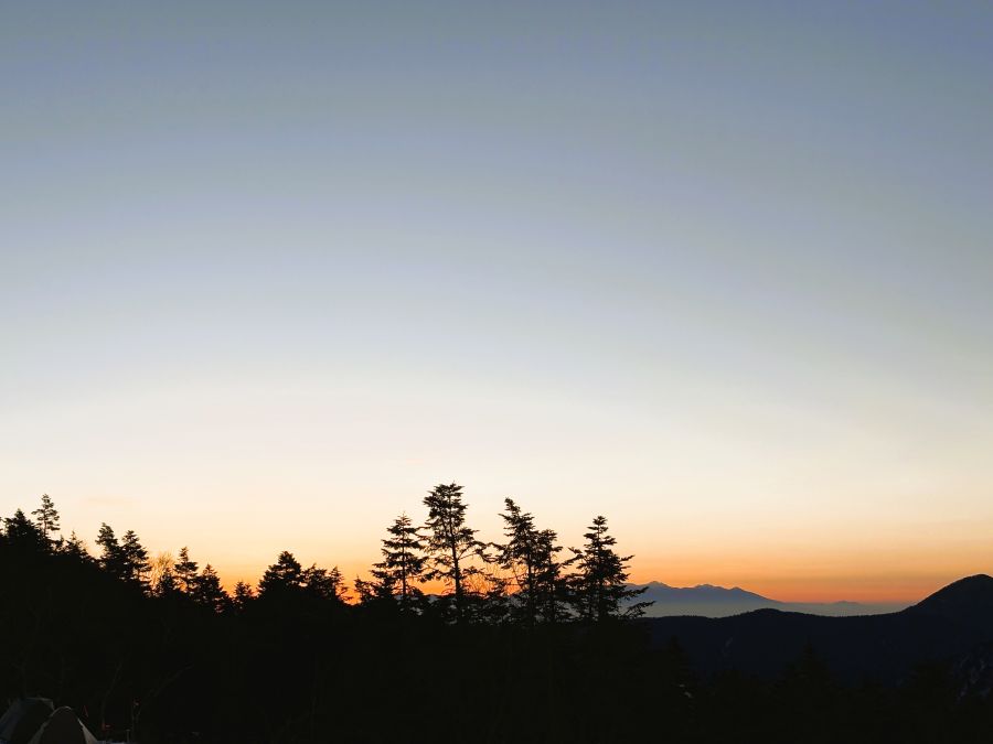 太陽が沈んでも、稜線の赤色はいつまでも消えず、夜はゆっくりと時間をかけて更けてゆくのだな。